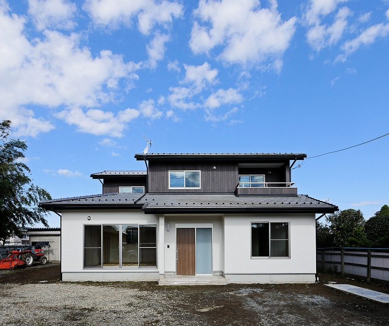 case study 結城郡八千代町 S様邸 延床面積 : 約55坪(183.84㎡)。ガレージ、吹抜け等その他工事面積 : 151.54㎡ 農業を営む家族の家。和の知恵を活かした強く美しく長持ちする家づくり。 伝統工…