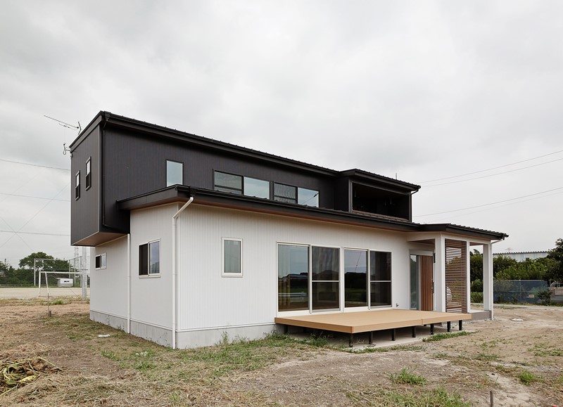 • リビング前にウッドデッキを広めに設け子供たちの遊び場に。