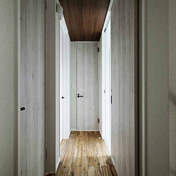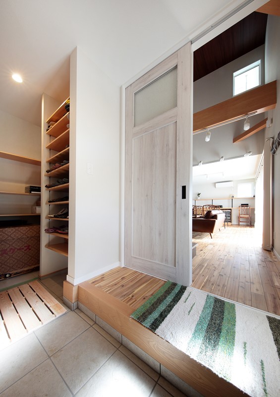 - 階段に3割ほど箪笥階段を造作することにより、和みを演出するとともに、収納機能を充実。