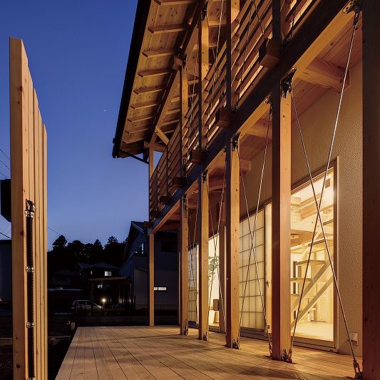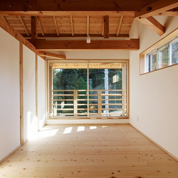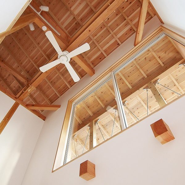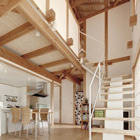 - 土台、柱には檜の無垢材、梁には粘りのある米松をもちいた木造伝統工法【渡り顎工法】による建築。