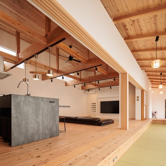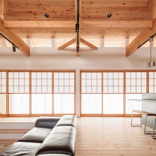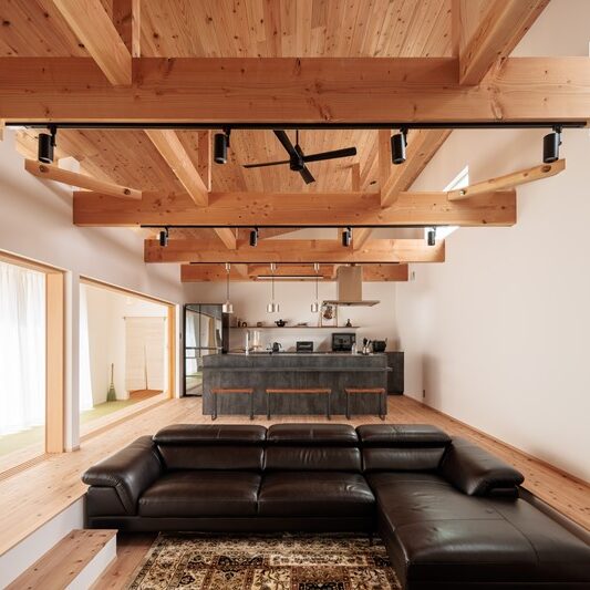 - 建物形状、内装を一部合板で仕上げるなどで理想を叶えつつもコストを削減。